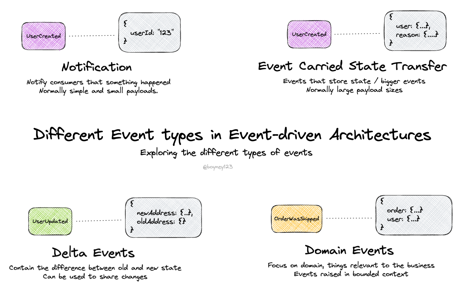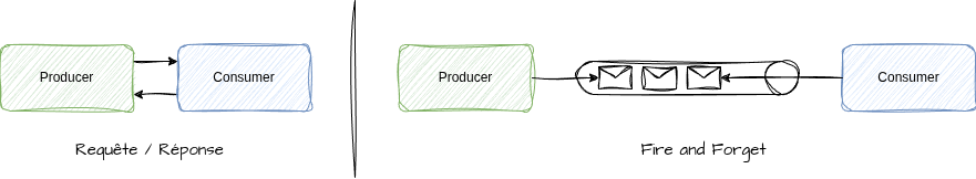 ## Architectures orientées évènement Communications asynchrones via des échanges de message (évènements) 🎯 Créer des architectures flexibles, évolutives, réactives  --- ## ✉️ Un évènement Représente un changement d'état, une occurence dans un système _Commande passée_, _Paiement effectué_, _Capteur de passage déclenché_, _Combat terminé_ Données souvent structurées : * un en-tête (métadonnées, date d'émission, publisher) * un payload (contenu de l'évènement) --- ## Éléments de l'architecture * 📤 publisher / producer : émet les évènements * 📥 subscriber / consumer : reçoit et traite les évènements * 🚚 broker / canaux : transportent les évènements  --- ## 📬 Brokers de message    --- ## 💣 Résilience et Tolérance aux Pannes * 💾 Persistence des messages * ↔️ Scalabilité horizontale  --- ### 🎉 Avantages * découplage * scalabilité * flexibilité * réactivité et temps réel * résilience --- ### 😈 Inconvénients * complexité de l'orchestration des évènements * debugging * cohérence des données --- ### 🧭 cas d'usage courants * 🛒 e-commerce : gestion des commandes, mises à jour de stock * 🌡️ IoT : traitement de données de capteurs * 💸 Finance : trading, détection de fraude * 🍡 Micro-services : communication asynchrones * 🗄️ CDC : Change-Data-Capture : capture des changement d'une base de données --- ### Patterns #### [Event Sourcing](https://martinfowler.com/eaaDev/EventSourcing.html)   * liste des évènements * possibilité de reconstruire entièrement l'état de l'application * rejeu d'évènements --- ### Patterns #### [CQRS](https://martinfowler.com/bliki/CQRS.html)  * séparation des _Query_ (lecture) et des _Command_ (écriture) * L'EDA implémente souvent la partie _Command_ * ⚠️ Consistence des données --- #### 🛣️ Road to CQRS (1/3)  --- #### 🛣️ Road to CQRS (2/3)  --- #### 🛣️ Road to CQRS (3/3)  --- #### [Outbox](https://microservices.io/patterns/data/transactional-outbox.html) rend l'écriture des messages (évènements) transactionnelle  --- #### [CDC](https://sudohainguyen.github.io/2023-11-20-change-data-capture/) : Change-Data-Capture synchroniser des systèmes, intégrer de l'EDA dans du legacy  (Kafka Connect / Debezium) --- #### [Event types](https://eda-visuals.boyney.io/visuals/event-types)
